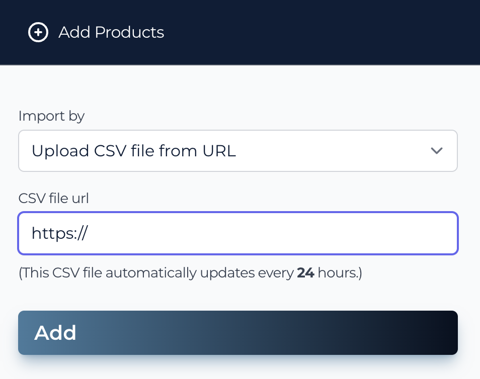 Next, assemble a list of EAN codes for the products you want to track. You can add them manually or import a dynamic CSV from a URL. Just make sure the EAN codes are listed in the first column and don't worry, you can add up to 2,000 products per list.